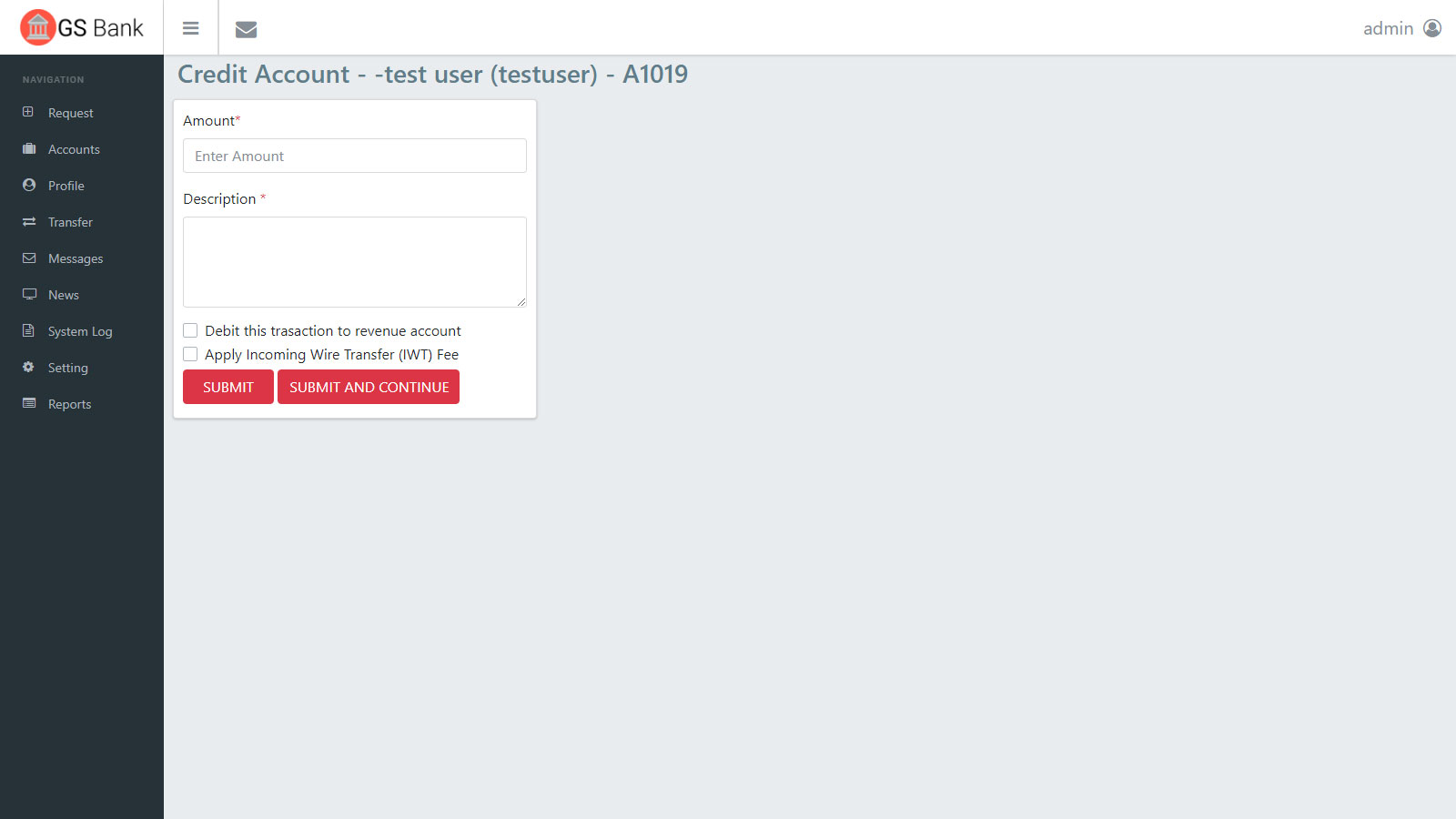 - The admin can use this feature of Outgoing Wire Transfer for transferring any fund amount to different banks.