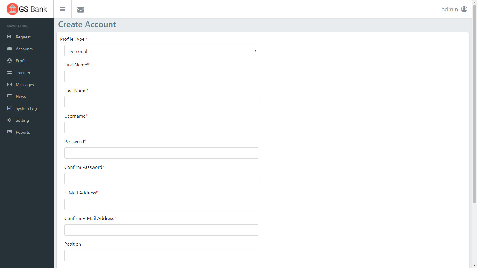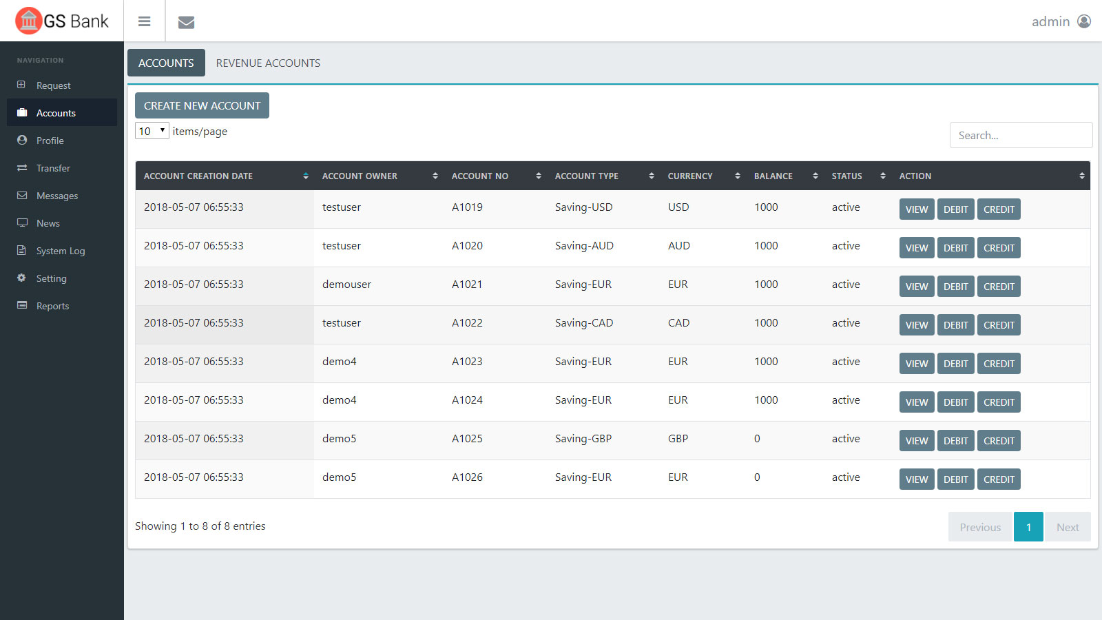 In this Transaction banking software, the admin section involves creating a new account in a much easy manner.