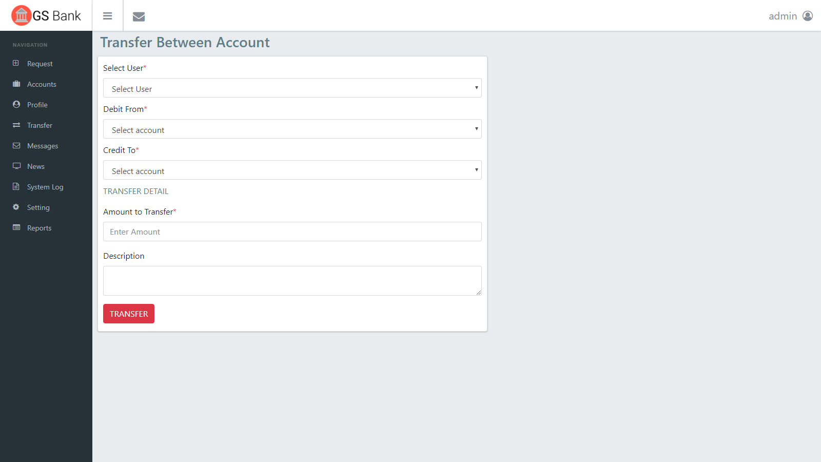 - We have the simplest way to transfer the fund. You can click Transfer option and then select user, go for credit or debit form account, fill up transfer detail and click button to Transfer.