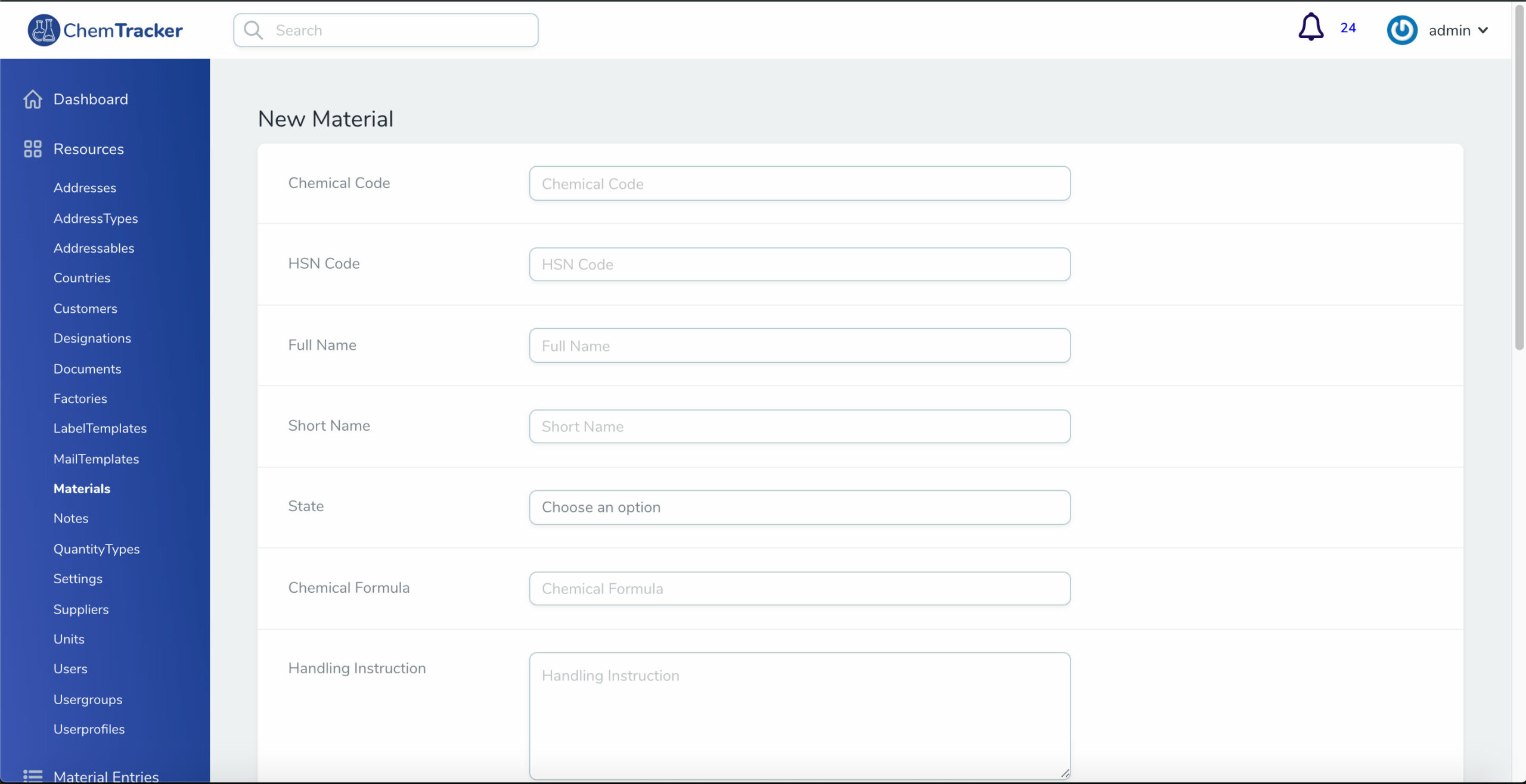 ChemTracker is a web-based application that helps Industrial Chemical Manufacturing Companies to streamline their Inventory, Suppliers, Dispatch, Quality Control Processes, and audits. It also has tools to print Industry Standard Labels / Safety Stickers for Chemical products. The software uses QR Code / Barcode to track the key dates in the chemical life cycle.