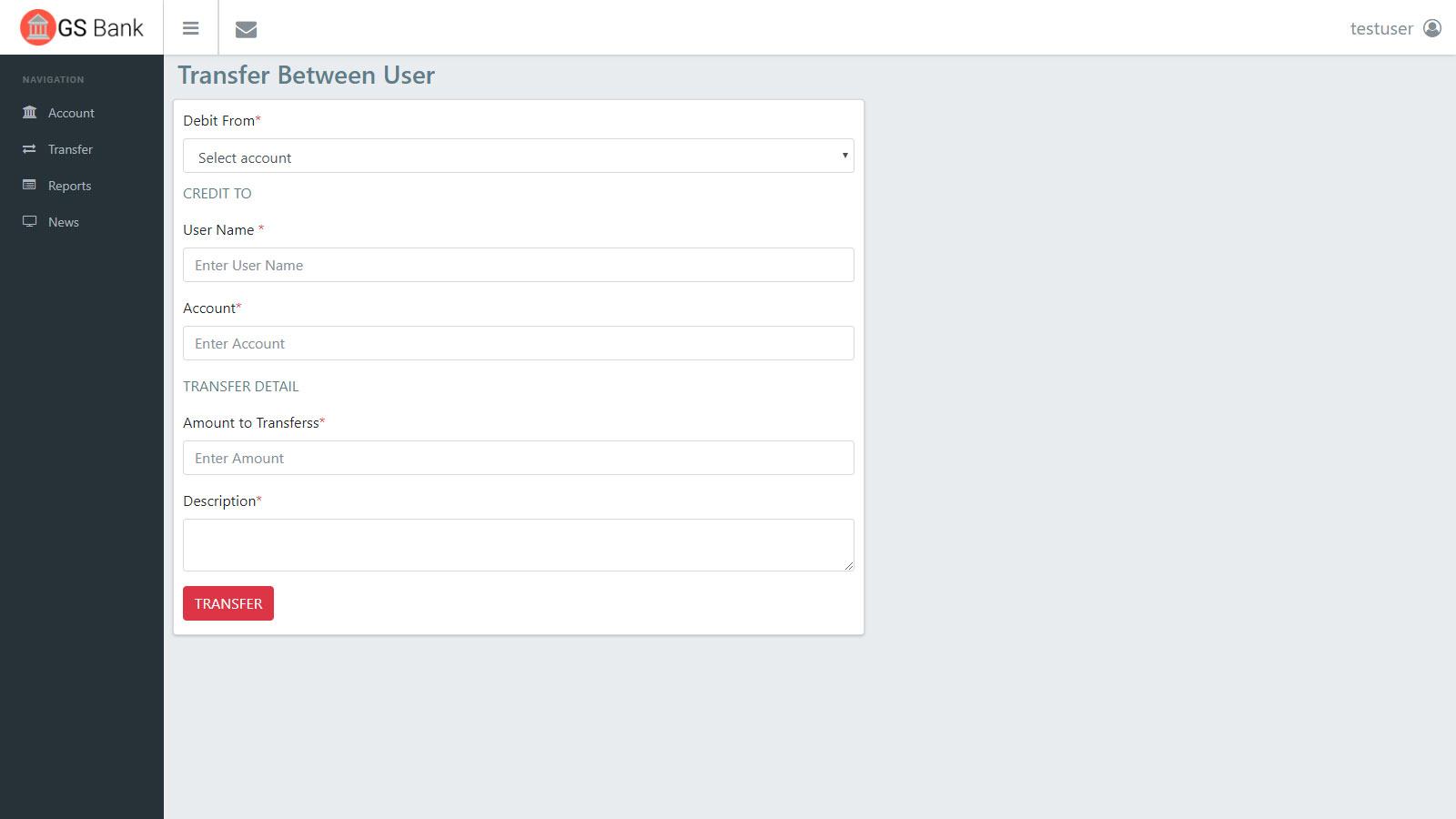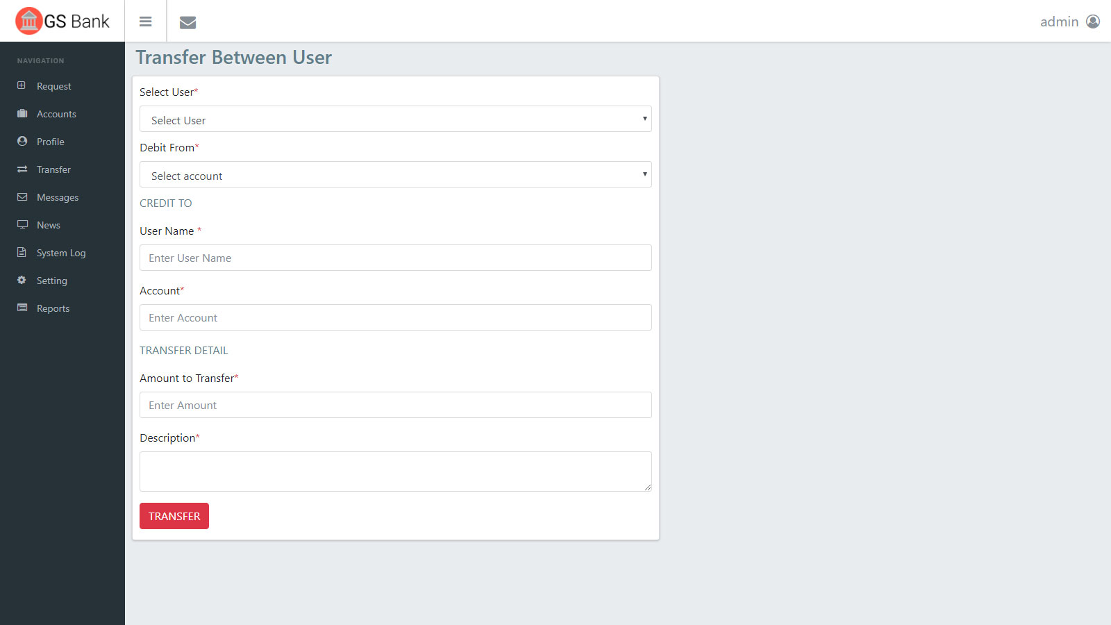 - We have the simplest way to transfer the fund. You can click Transfer option and then select user, go for credit or debit form account, fill up transfer detail and click button to Transfer.