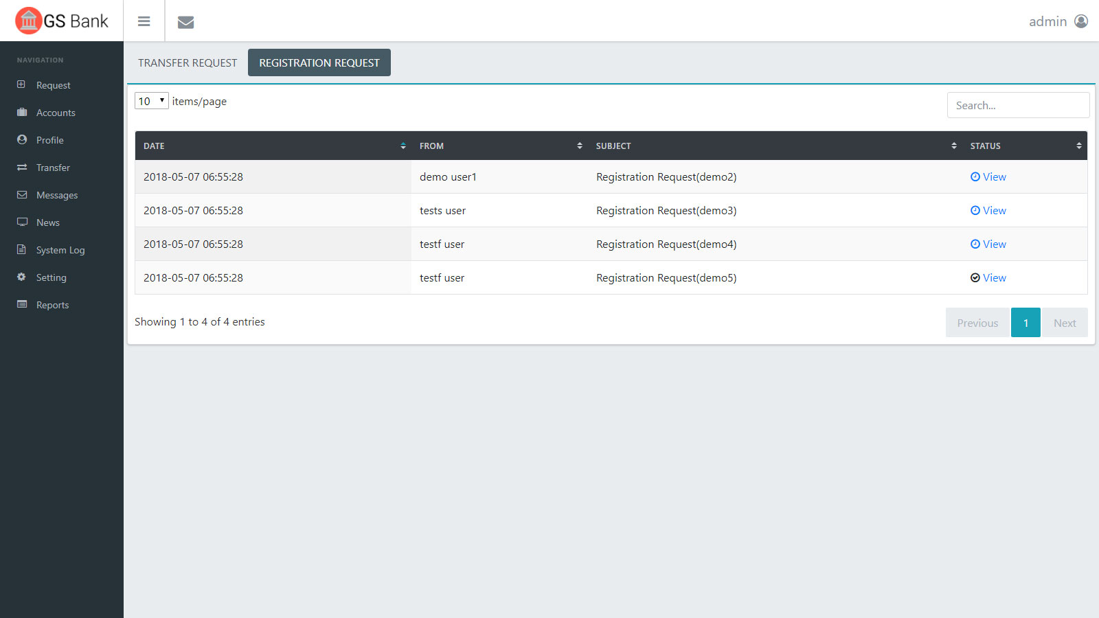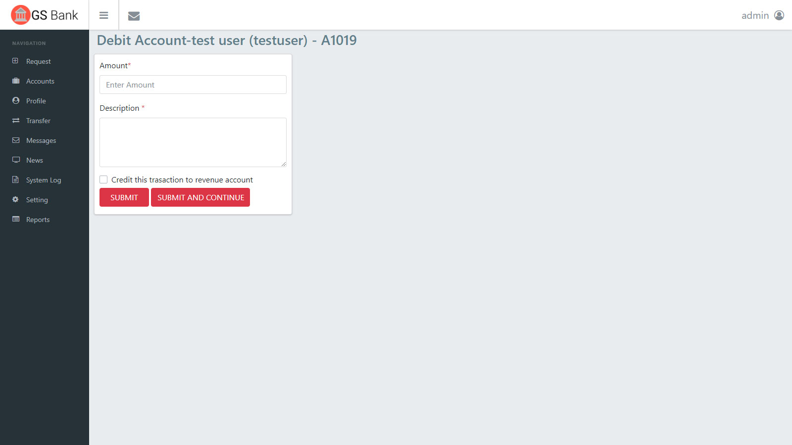 In this Transaction banking software, the admin section involves creating a new account in a much easy manner.