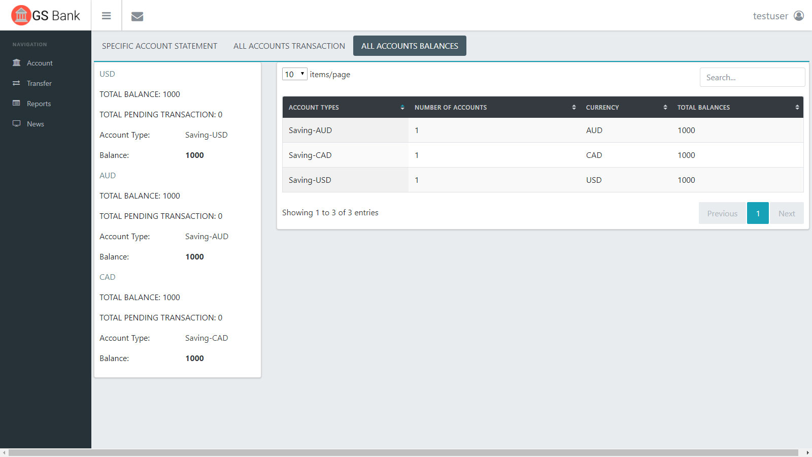 You also have a Transfer section in this banking software where one could Transfer amounts between Accounts, Transfer between User and Outgoing Wire Transfer.