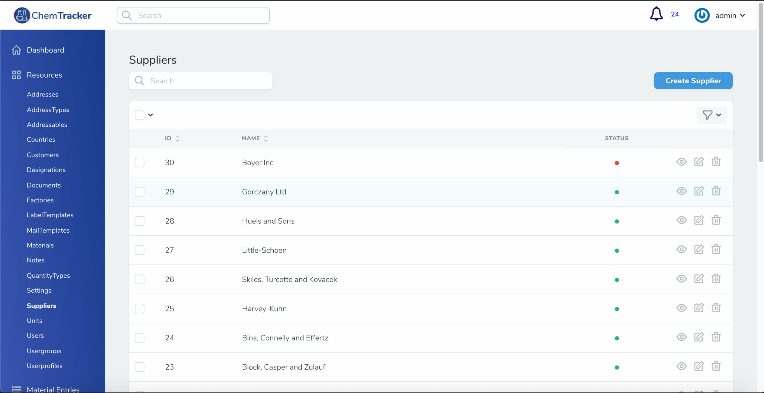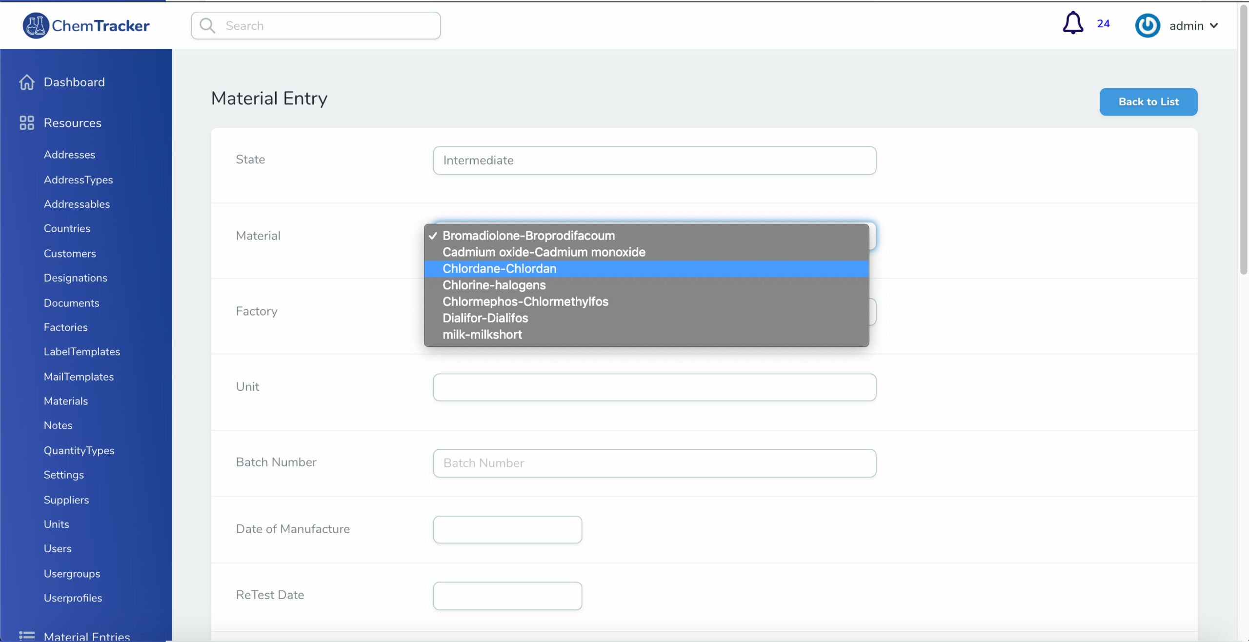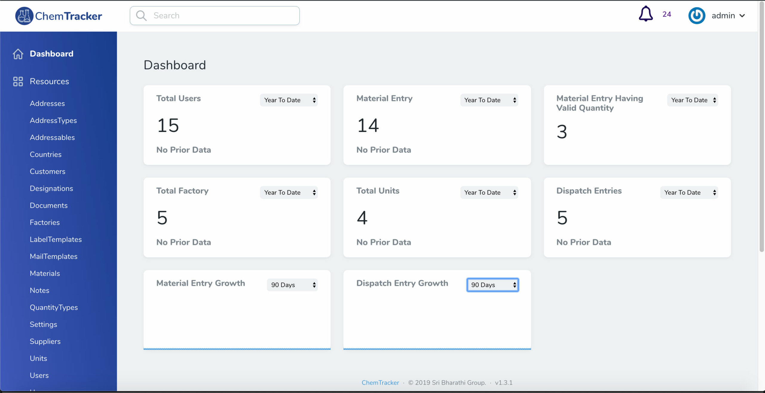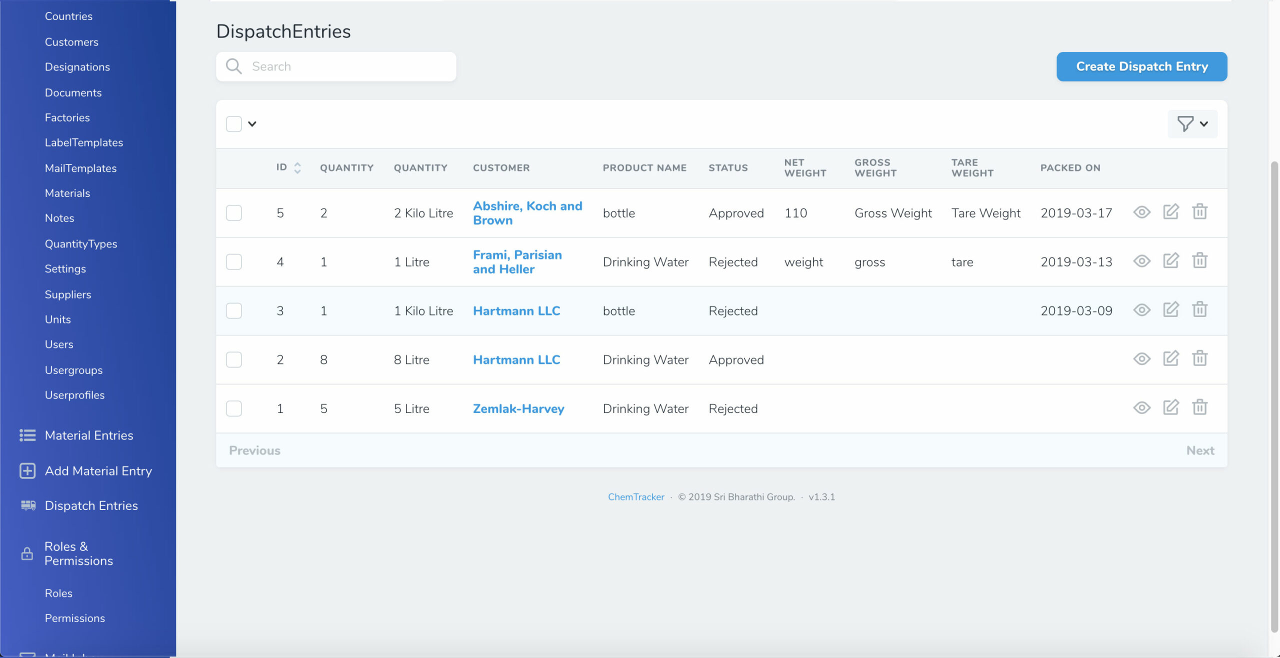 ChemTracker is a web-based application that helps Industrial Chemical Manufacturing Companies to streamline their Inventory, Suppliers, Dispatch, Quality Control Processes, and audits. It also has tools to print Industry Standard Labels / Safety Stickers for Chemical products. The software uses QR Code / Barcode to track the key dates in the chemical life cycle.